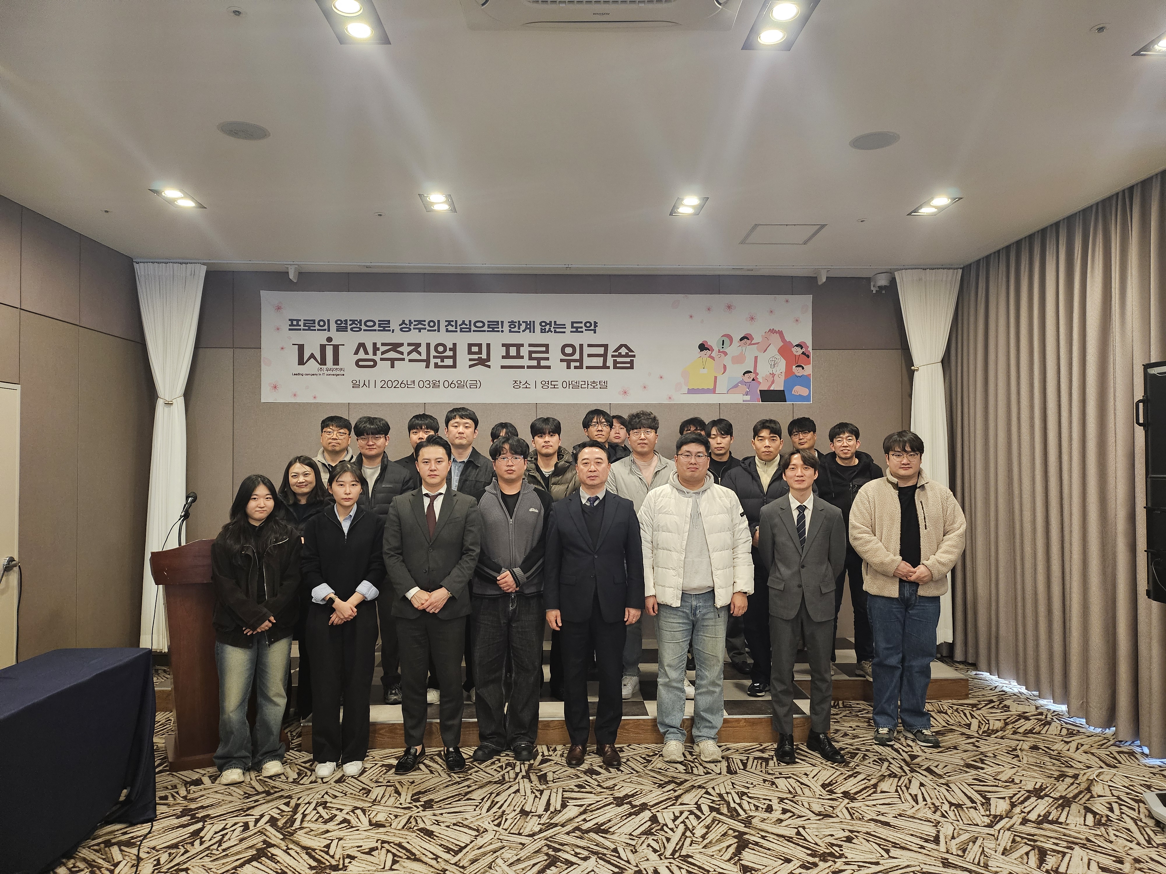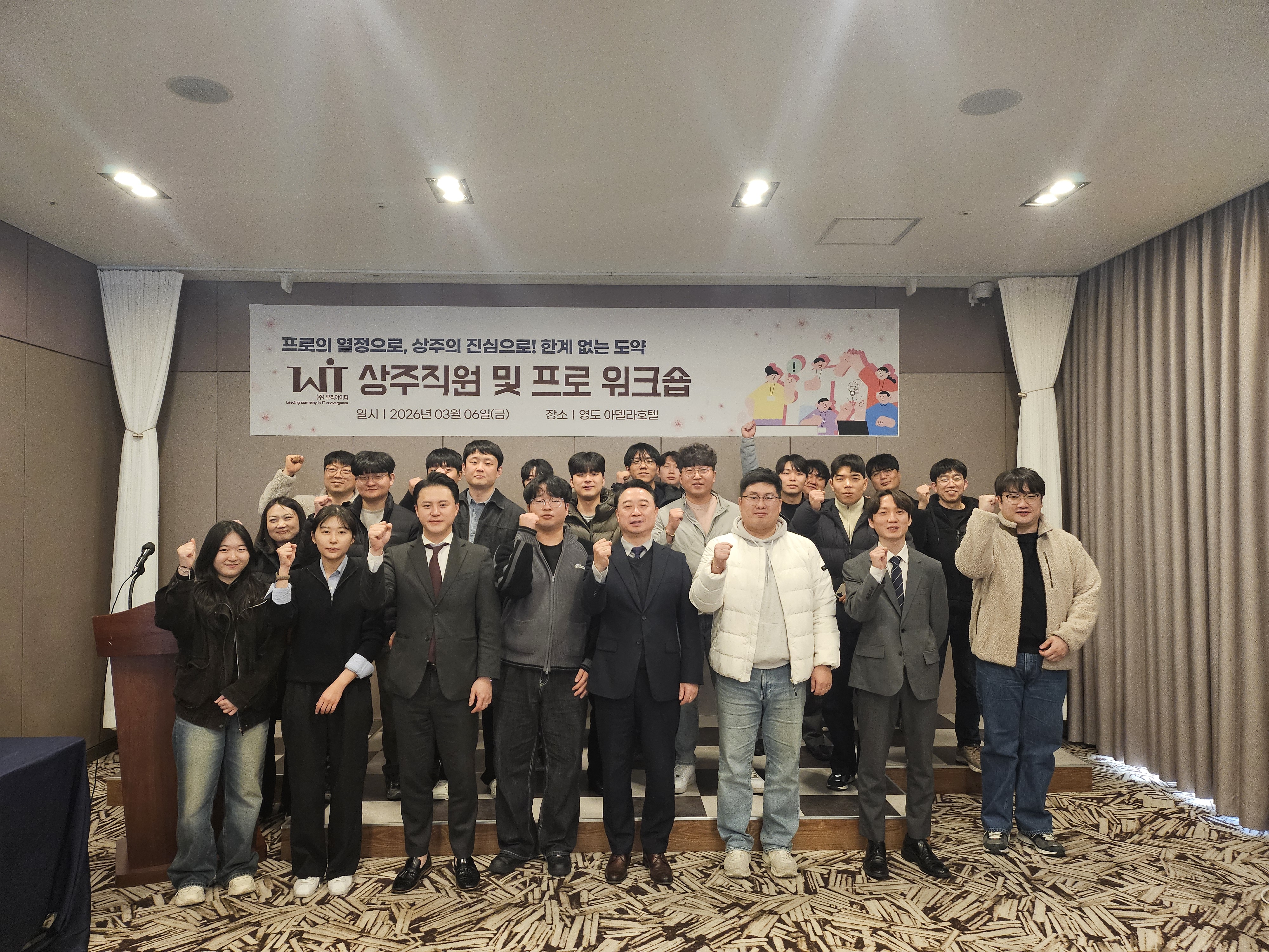 지난 3월 6일(금) 오후 1시 30분부터 부산 영도에 위치한 아델라 호텔에서 " (주)우리아이티 2026년 상주직원 및 프로 워크숍 " 이 개최되었습니다.